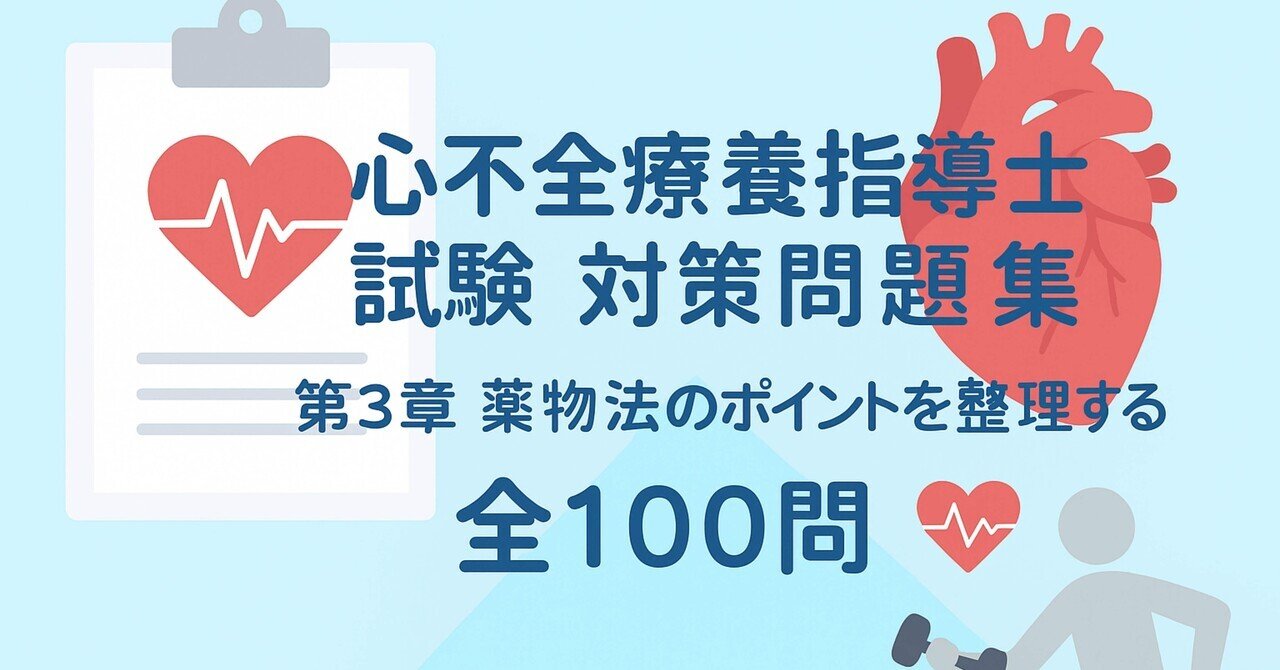 はじめに こんにちは。 本記事では、心不全療養指導士試験の受験者向けに、効率的に学べる 試験対策問題集(全100問) をご用意しました。 誤字脱字が含まれる可能性があります。また、問題を全て解いたことによる合格の保証もございません。 ただだ...