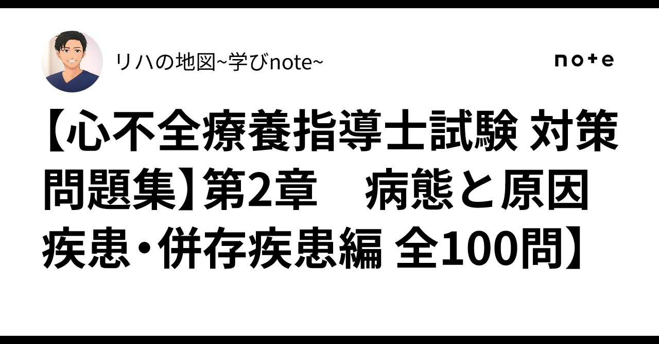 【心不全療養指導士試験 対策問題集】第2章 病態と原因疾患・併存疾患編 全100問】|リハの地図~学びnote~