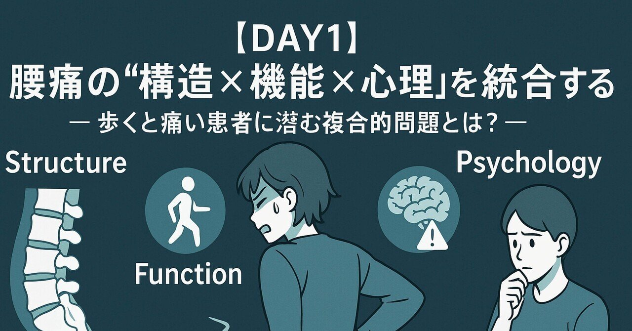 【DAY1】腰痛の“構造 × 機能 × 心理”を統合する:歩くと痛い患者に潜む複合的問題とは?|リハの地図~学びnote~