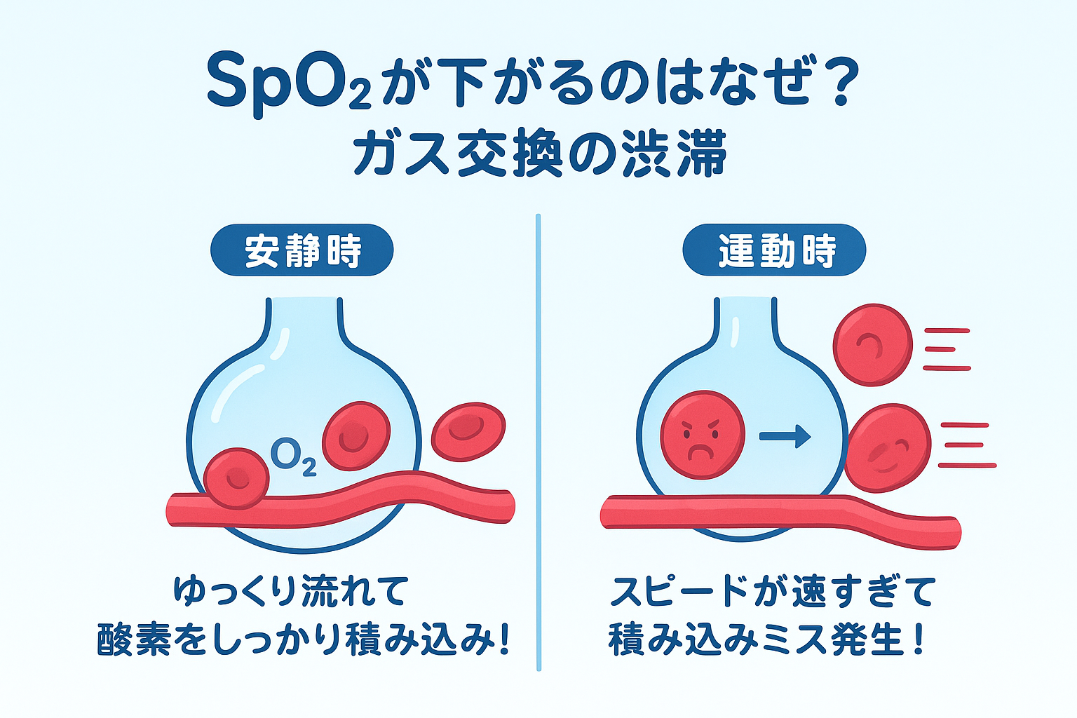 SpO2が下がるのはなぜ?原因は「ガス交換の渋滞」
