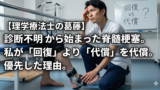 あなたのペースで、あなたにしかできない理学療法がきっとあります。焦らず、昨日の自分より少しでも成長できた自分を認め、褒めてあげてください。応援しています。