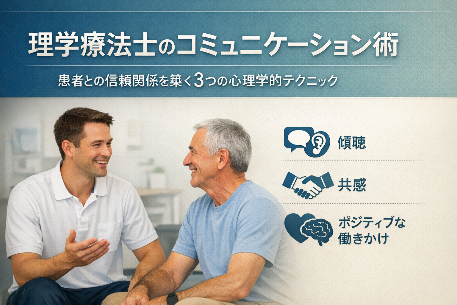 理学療法士のコミュニケーションは「なんとなく仲良くする」ためのものではありません。治療の質を直接左右する、臨床スキルの一部です。