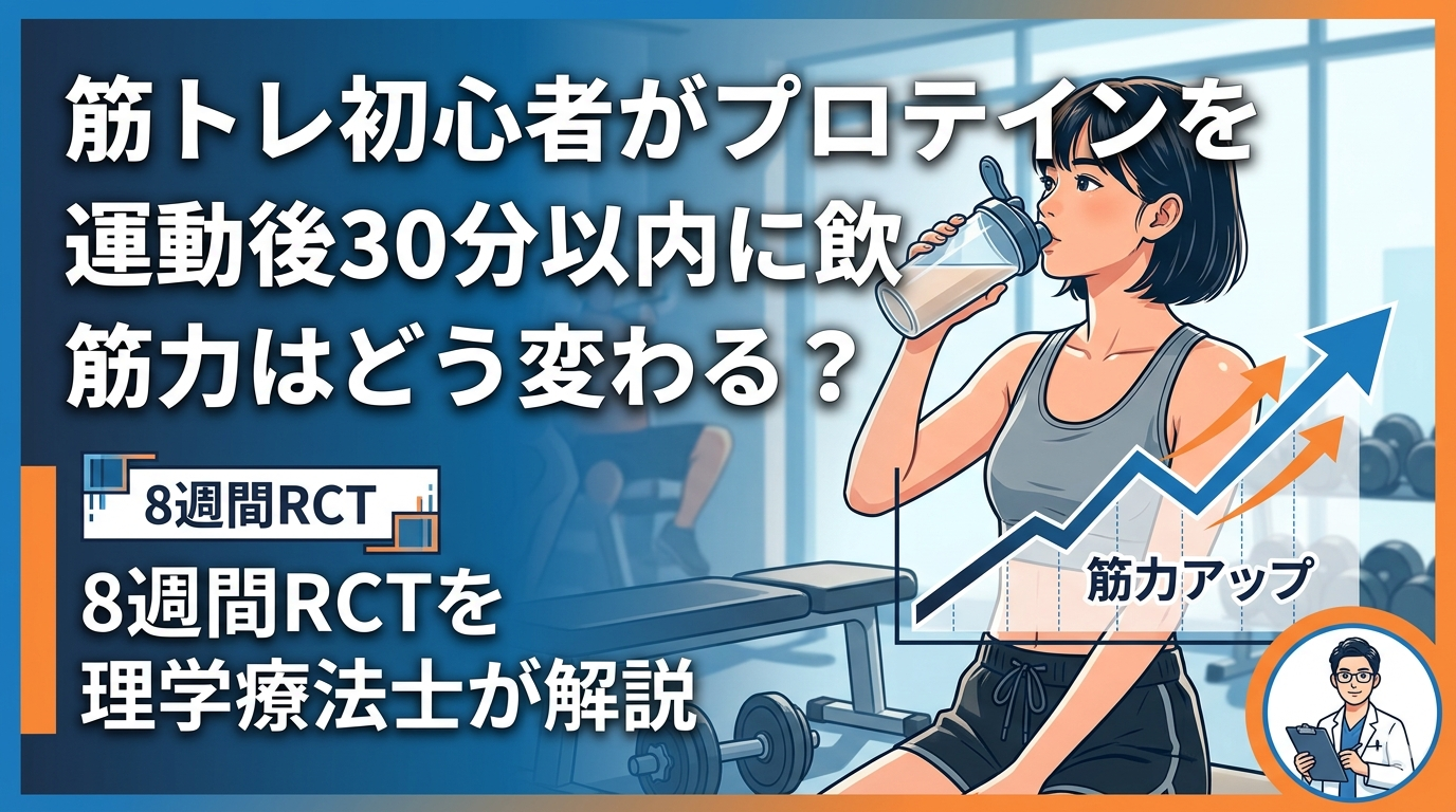 筋トレ初心者がプロテインを運動後30分以内に飲むと筋力はどう変わる?8週間RCTを理学療法士が解説
