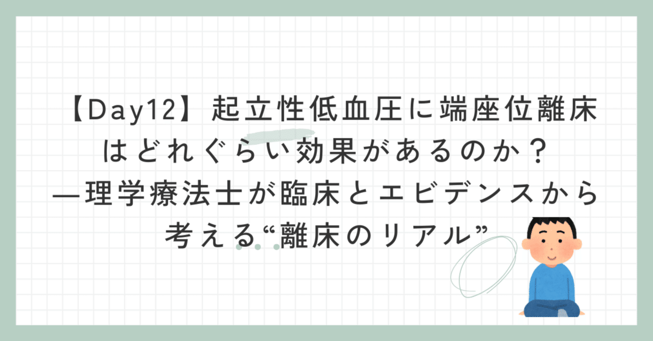 今回ご紹介する記事 『起立性低血圧に端座位離床はどれぐらい効果があるのか?―理学療法士が臨床とエビデンスから考える“離床のリアル”』 では、さらに踏み込んだ内容を解説しています。