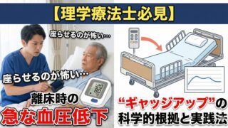 【理学療法士必見】離床時の「急な血圧低下」を防ぐギャッジアップ長座位の科学的根拠とは?「なんとなく」の介入を卒業し、エビデンスに基づいた安全なリスク管理と実践法を解説。明日からの臨床を変える、起立性低血圧対策のヒントをお届けします。
