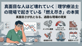 日記 真面目な人ほど壊れていく|理学療法士の現場で起きている「燃え尽き」の本質 はじめに「あの先生、すごく頑張ってたのに、急に来なくなった」理学療法士の臨床現場にいると、こんな話を一度や二度は耳にしたことがあるのではないでしょうか。しかもそういうケースに限って、「一番真面目で、患者さんのことをよく考えていた人」だったり... 2026.02.27 日記理学療法士