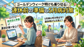 GW明けの憂鬱や「5月病」に悩んでいませんか?連休明けをスムーズに乗り切る鍵は、実は『連休前の準備』にあります。本記事では、休み明けの負担を減らす事前準備と、心身を整える具体的な5月病対策を解説。連休前に読んで、スッキリとした気分でスタートを切りましょう!